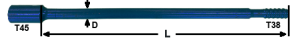 | 1 1/2" | 39mm | 19 11/16" | 500mm | THU-DBAR-T45/R39/T38-MF-500 | - | |